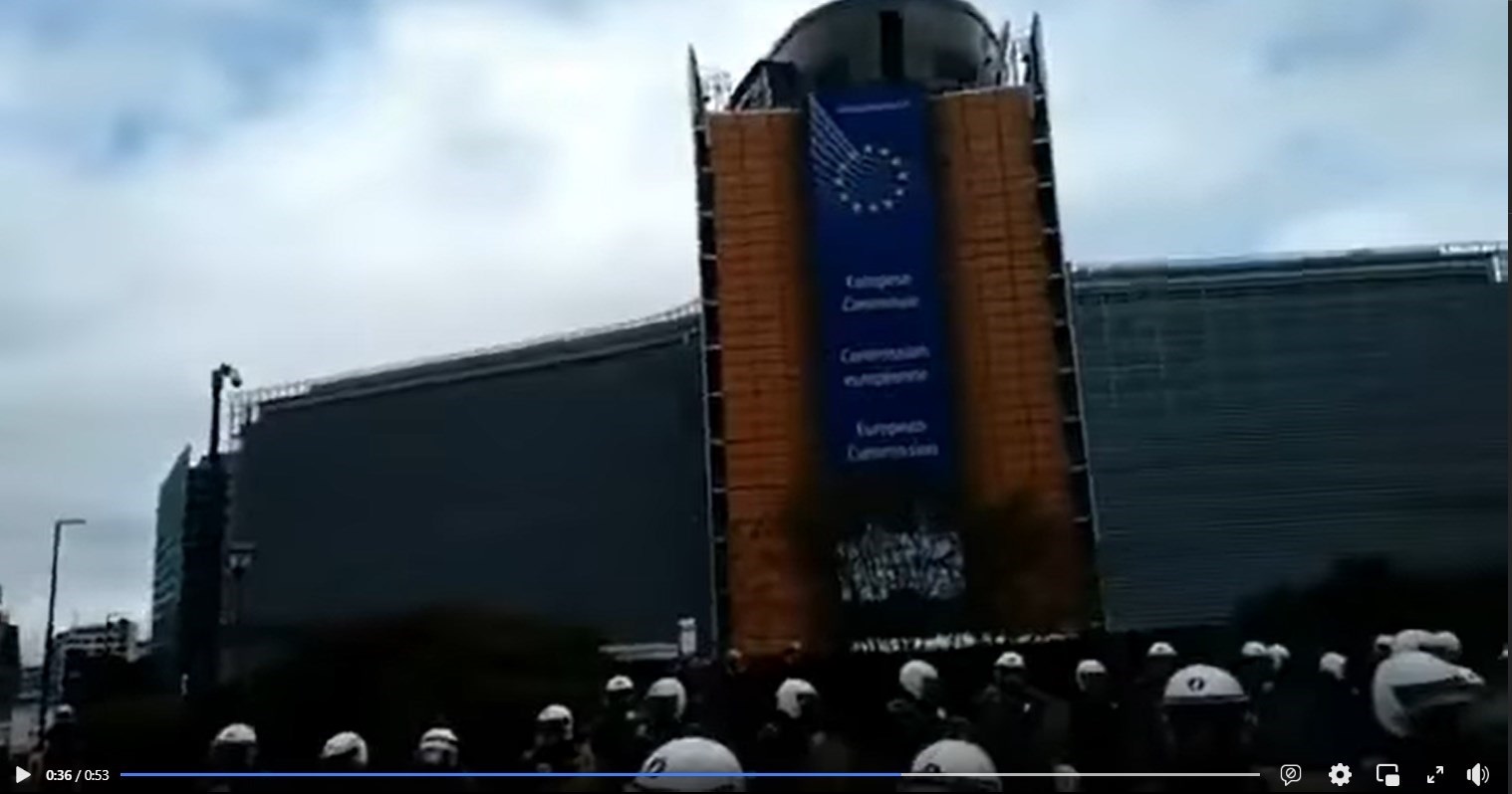 A Justius Lipsius épülete pedig a rövidebb videóban is látható 14 másodperc környékén a rendőrök mögött.