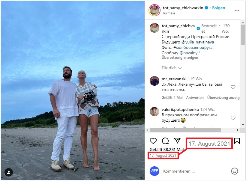De a Julija Navalnajáról jelenleg terjedő fotó már régi. Egy fordított képkeresés megmutatta, hogy a fotót 2021-ben töltötték fel a “tot_samy_chichvarkin” Instagram-fiókra. Ez Jevgenyij Csicsvarkin, egy 49 éves orosz milliárdos profilja.