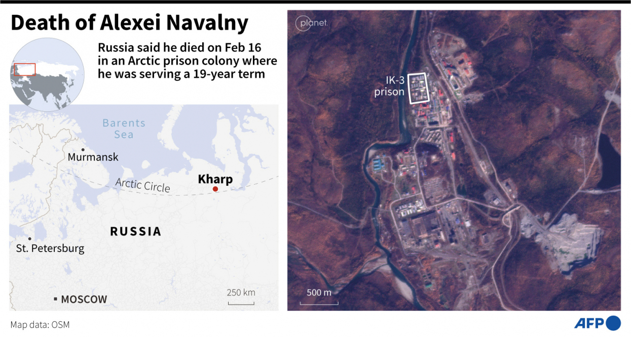 Alekszej Navalnij orosz ellenzéki vezető 2024. február 16-án halt meg 47 éves korában egy sarkvidéki büntetőtelepen (itt archiválva). Sok nyugati vezető azzal vádolta Moszkvát, hogy Oroszország felelős Navalnij haláláért (itt archiválva).