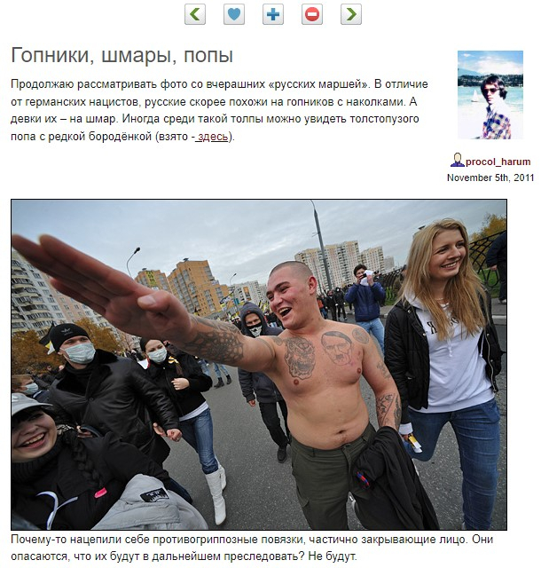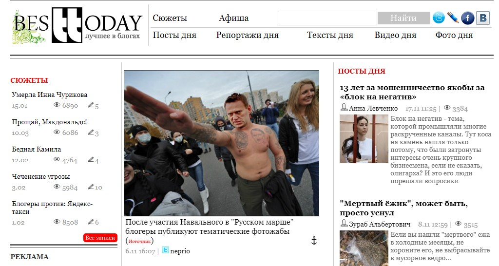 A kép 2011. november 6-án jelent meg a besttoday.ru orosz oldal “a nap fotója” rovatában (archivált link), a következő felirattal: „Miután Navalnij részt vett az ‘Orosz meneten’ a bloggerek a témába vágó photoshoppolt képeket osztottak meg”.