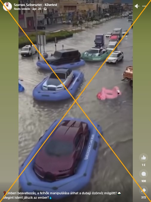 Április közepén az Egyesült Arab Emírségeket hatalmas esőzések és erős szél sújtotta, más Öböl-menti országokkal egyetemben. Az extrém időjárás a régióban áradásokat és jelentős fennakadásokat okozott, valamint több mint 20 emberéletet követelt. Ezzel összefüggésben az interneten téves információk terjedtek el arról, hogy a kaotikus helyzet mögött időjárás-manipuláció állhatott. Közismert, hogy az Egyesült Arab Emírségek alkalmazza a cloud seeding-nek (magyarul felhőetetést vagy felhőmagvasítás) nevezett eljárást. Ez egy olyan technika, amely növelheti a felhők esőtermelő képességét. Szakértők szerint azonban a felhőetetésnek nem lehet ilyen nagy volumenű hatása, és az extrém időjárási esemény “nagy valószínűséggel” a klímaváltozásnak tudható be. A vihar előtt az Egyesült Arab Emírségek hatósága és időjárás-előrejelző szolgálatai heves esőzésekre figyelmeztettek, és az ország meteorológiai központja az AFP-nek tagadta, hogy “bármilyen felhőetetési műveletet alkalmaztak volna ezalatt az időszak alatt”.