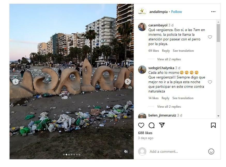 2024. június 24. óta az egyesület számos képet osztott meg a közösségi médiában a La Malagueta strandról, és sajnálkozását fejezte ki a szemét mennyisége miatt.