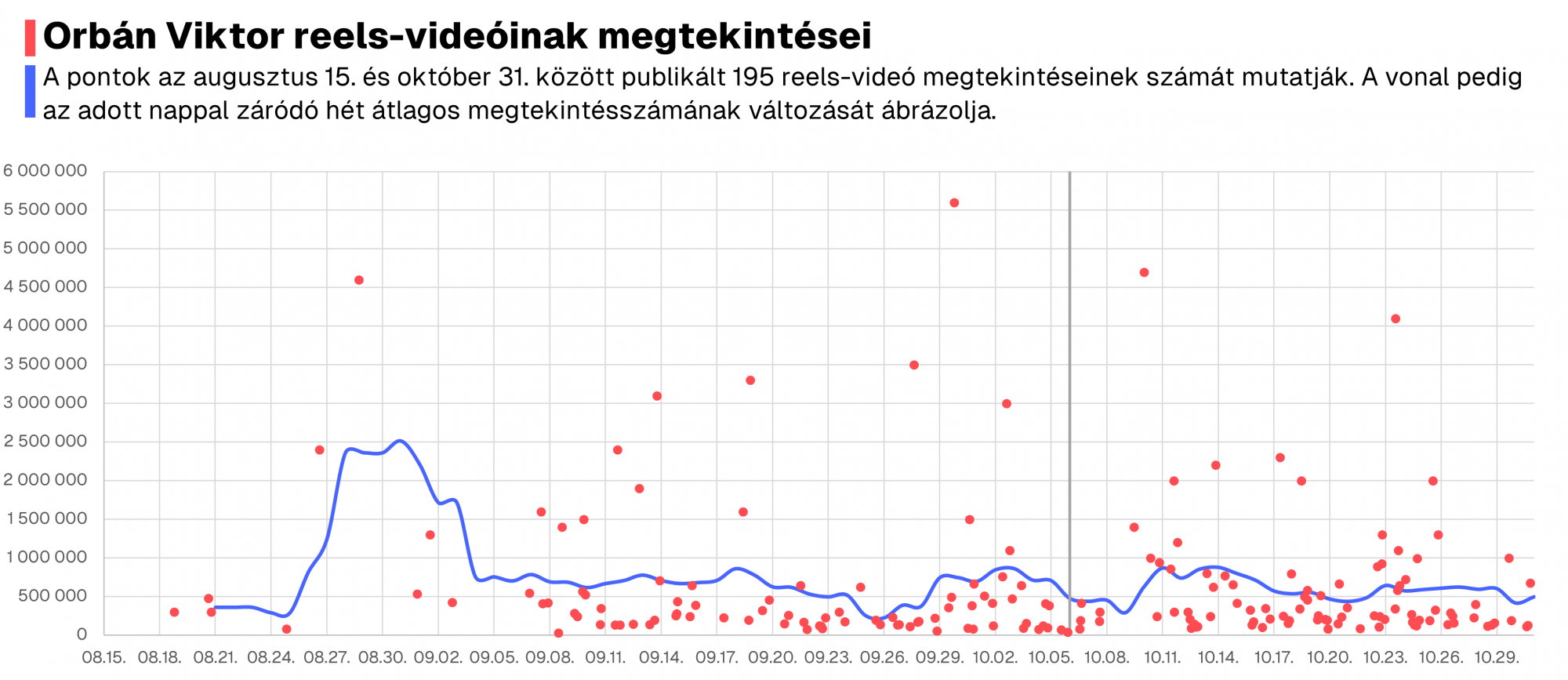 Orbán Viktor több videóval ér el a korábbihoz hasonló átlagot, Szentkirályi Alexandra számai viszont bezuhantak. Van olyan Fidesz-közeli gigahirdető is, aki inkább a szabályok megkerülését választotta. Megnéztük, mennyire jött be a reelsdömping, hogyan változott néhány fideszes szereplő elérése azután, hogy a Meta letiltotta a politikai hirdetéseket.