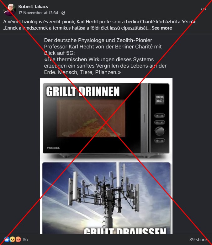 „A német fiziológus és zeolit-pionír, Karl Hecht professzor a berlini Charité kórházból az 5G-ről: »Ennek a rendszernek a termikus hatása a földi élet lassú elpusztítását okozza. Emberek, állatok, növények«” – olvasható egy magyar Facebook-bejegyzésben, amit a 2025. novemberi publikációja óta már több mint 80 felhasználó osztott meg.