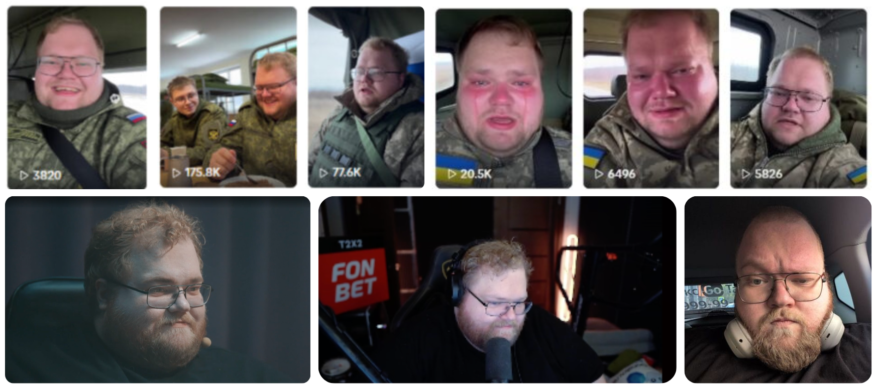 Hasonló videókban az 1,8 millió Twitch-követővel rendelkező T2x2 arcát is felhasználták, őt szintén megjelenítették orosz és ukrán katonaként is AI segítségével.