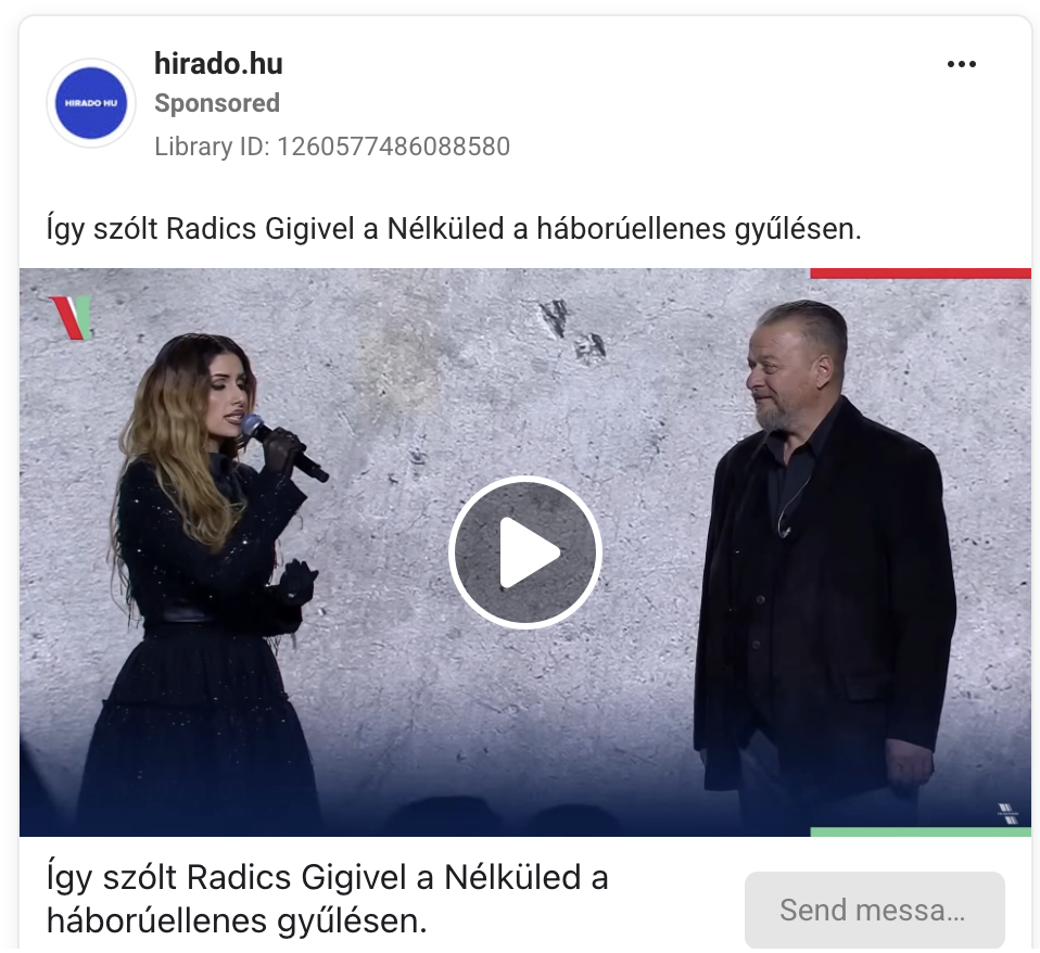„Magyarország hírforrása” a vizsgált héten a Facebook hirdetéstára szerint mintegy 130 hirdetést adott fel, köztük politikai témájúakat is, holott a platform saját közösségi irányelvei alapján ilyen hirdetések már nem jelenhetnének meg.