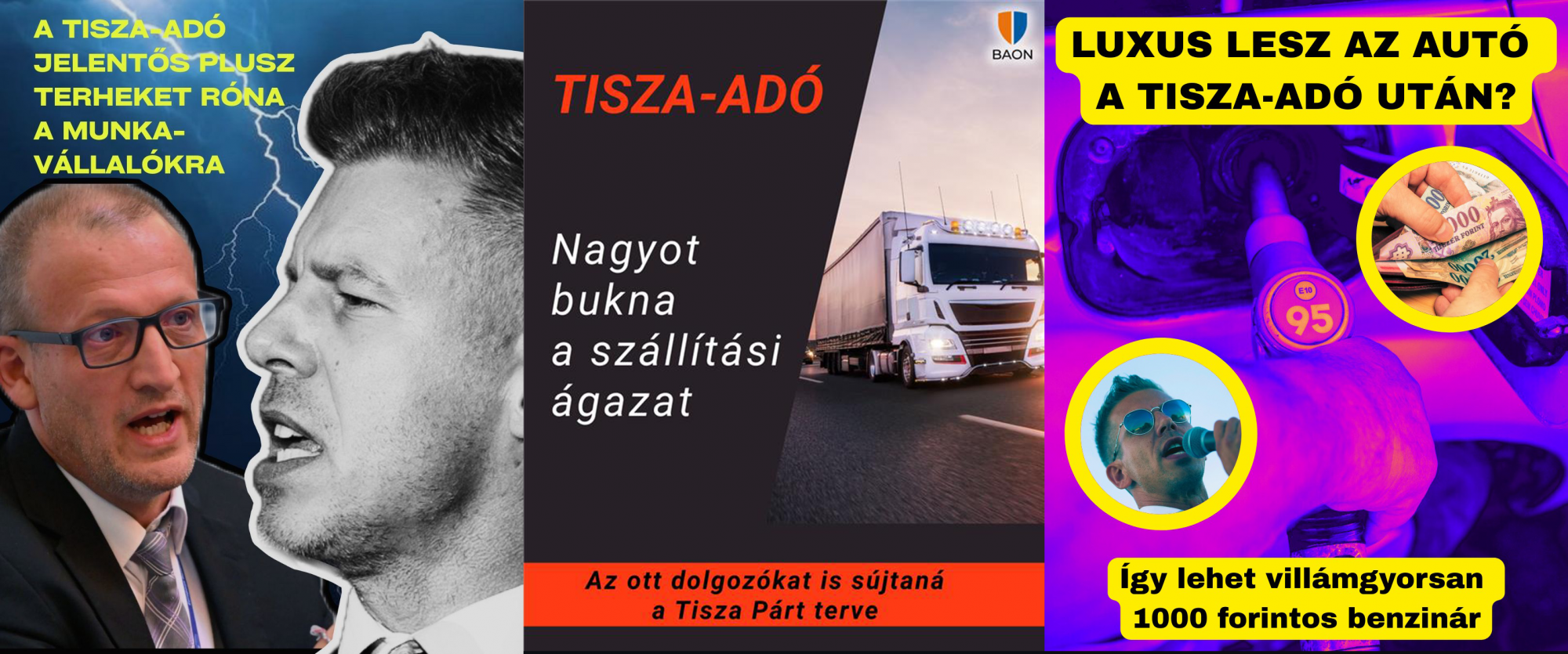 A képekhez kommentben csatolt cikkek a Kisalföld felületén az építőipari dolgozókra nehezedő állítólagos plusz szja-terhekre hívták fel a figyelmet, a BAON a szállításban és raktározásban dolgozókra gyakorolt vélt negatív hatásokat emelte ki, míg a Szabolcs Online egyenesen ezer forint fölé ugró benzinárakat vizionált arra az esetre, ha a leendő Tisza-kormány valóban bevezetné a háromkulcsos adórendszert.