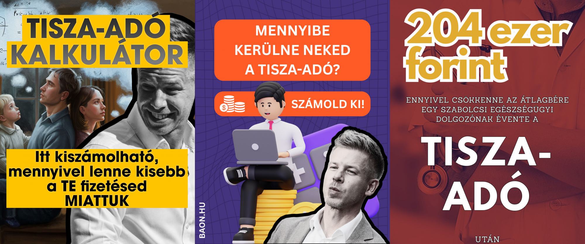 Az általunk vizsgált három megyei lap – a Kisalföld, a BAON és a(z Opicz Barbi bögybográcsai után epekedő cikkeiről országosan ismert) Szabolcs Online – Facebook-oldalain szeptember 3-án jelentek meg először összehangoltnak tűnő módon a Magyar Péter-ellenes képek, amik mind a Tisza állítólagos adóterveit festették le baljós színekben.