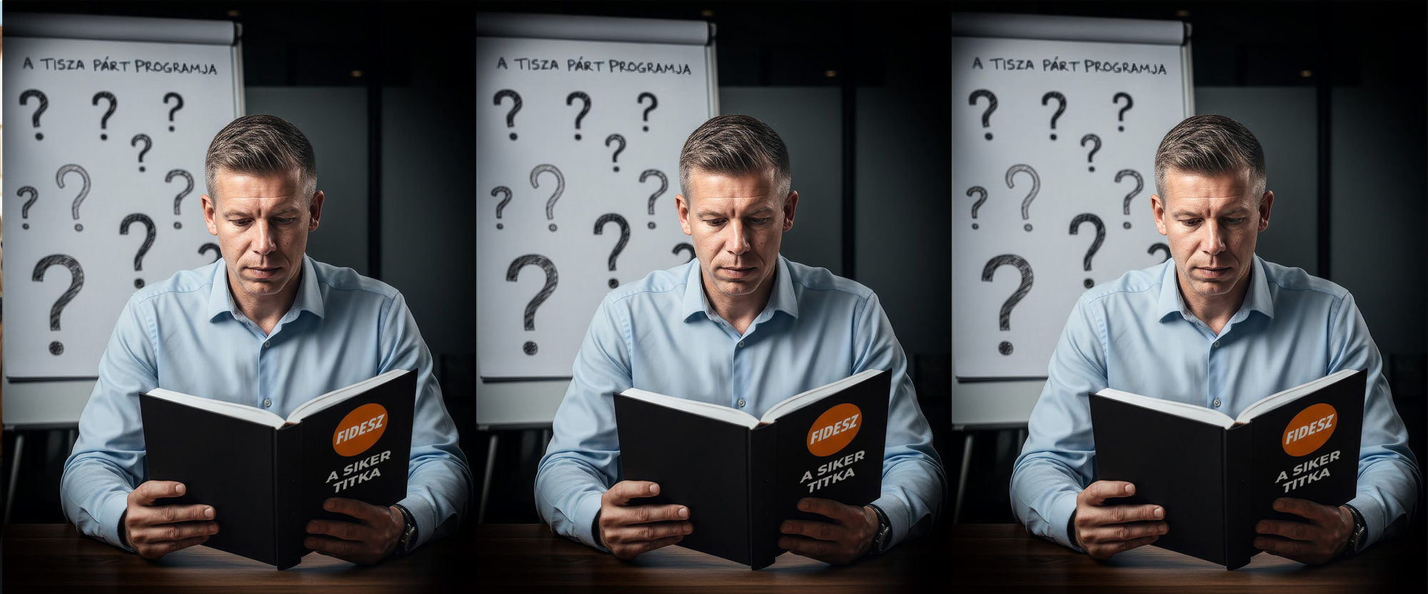 A Tisza Pártnak nincs valódi programja, csak a Fideszt másolja – sugallja az egyik vizuál: