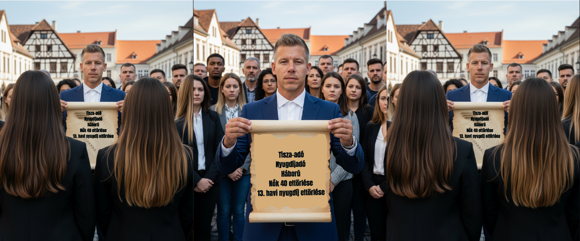 Mégis van programja – állítja egy másik képsorozat, amelyen Magyar Péter egy modern kori Luther Mártonként mutatja be a „megszorításokra” vonatkozó javaslatait: