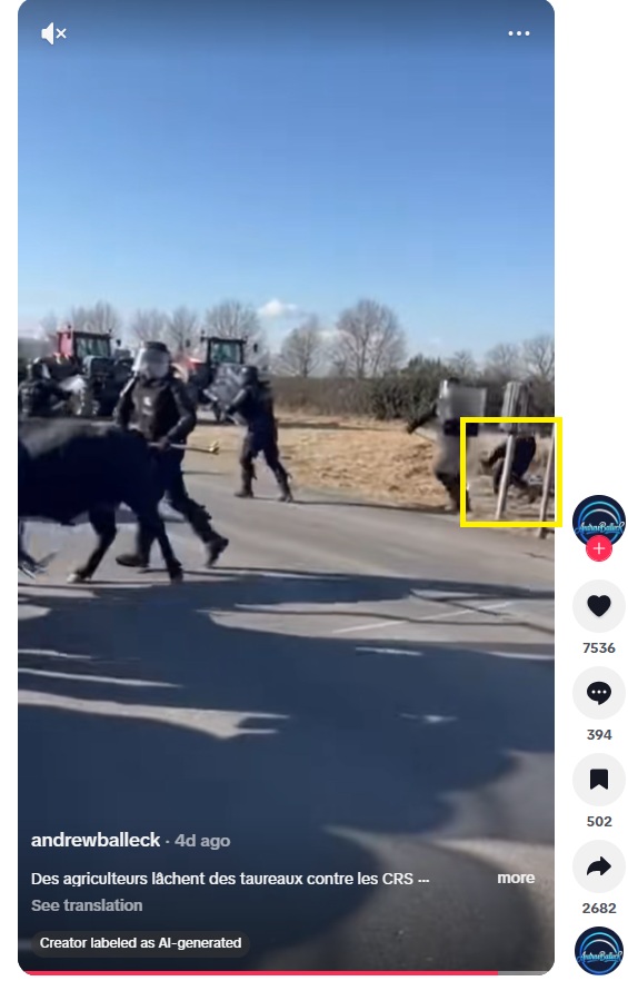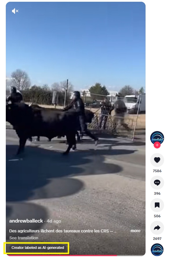 Ez a videó MI-vel készült, és nem egy valódi felvétel francia rendőrökre támadó bikákról