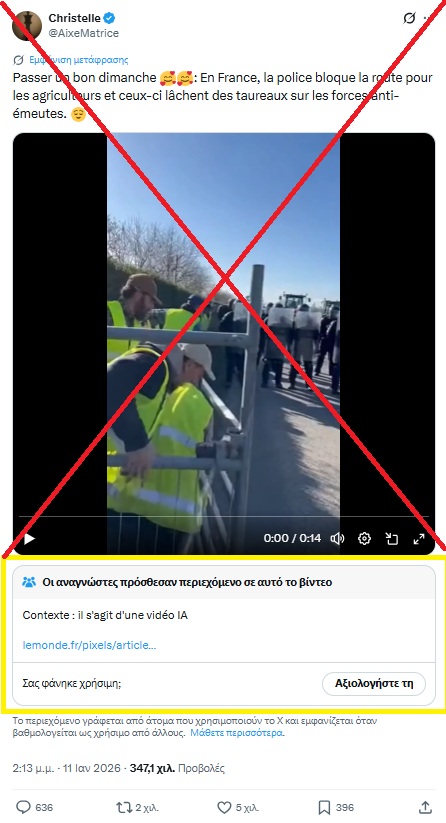 Az egyik francia X-poszton található közösségi megjegyzés szintén AI-generáltként jelölte meg a videót.