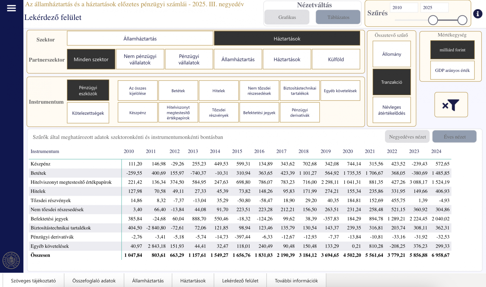 Az MNB pénzügyi számlákról szóló táblázatából kiderül, hogy ez 2010-ben 1359 milliárd forint, 2024-ben pedig 5507 milliárd forint volt, vagyis ekkora volt az adott években a pénzügyi megtakarítás. Ez alapvetően egy négyszeres nominális emelkedés.