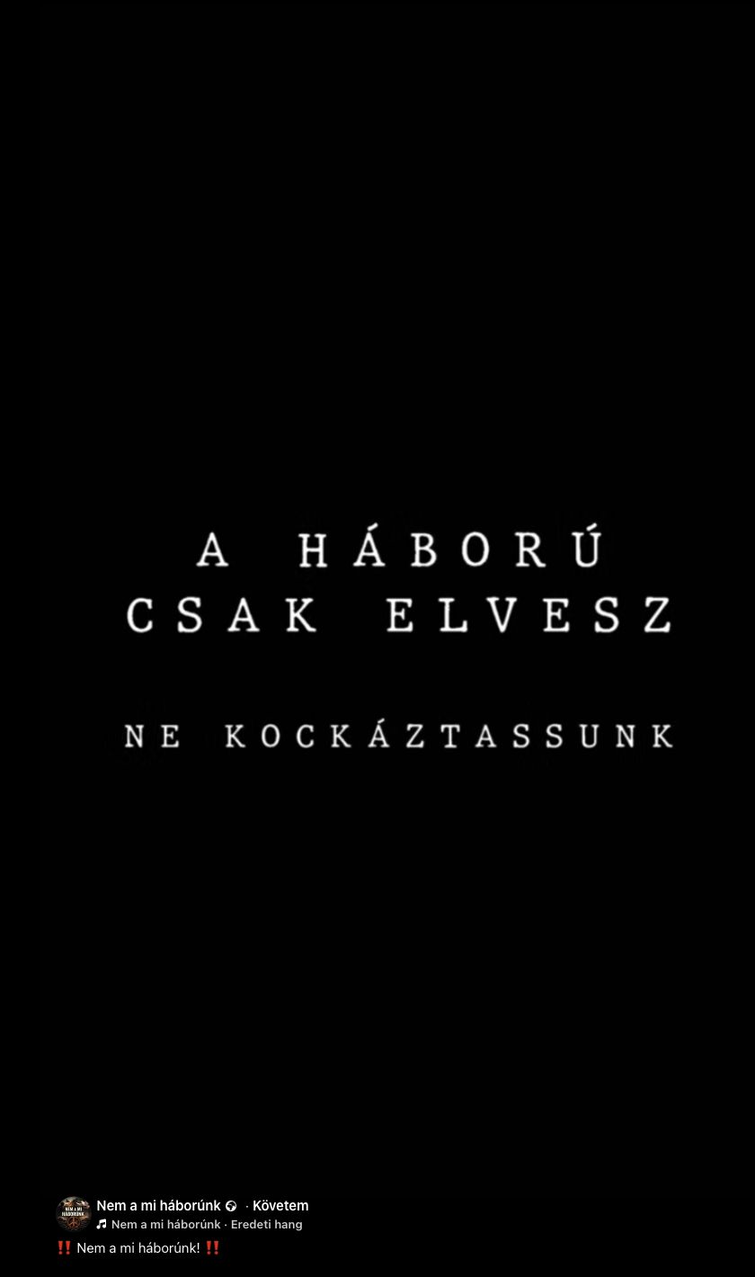 A Nem a mi háborúnk egyik februári reels-videójában egy családot láthatunk, aminek két férfiatagját besorozzák. A fronton bekötött szemmel állnak, és fejbe lövik őket, hasonlóan a budapesti Fidesz videójában ábrázolt jelenethez.