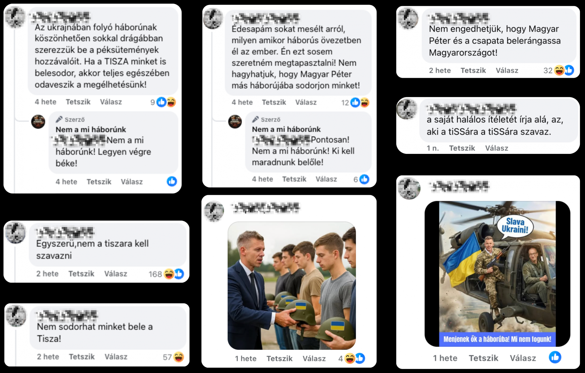 A felhasználók is felfedezték a Fidesz kampányüzenetét a Nem a mi háborúnk videóiban. Több komment is jött, amiben konkrétan megnevezik a Fideszt és a Tisza Pártot, illetve egyértelmű utalásokat tesznek az orosz-ukrán háborúra.