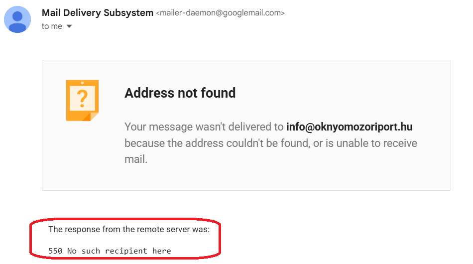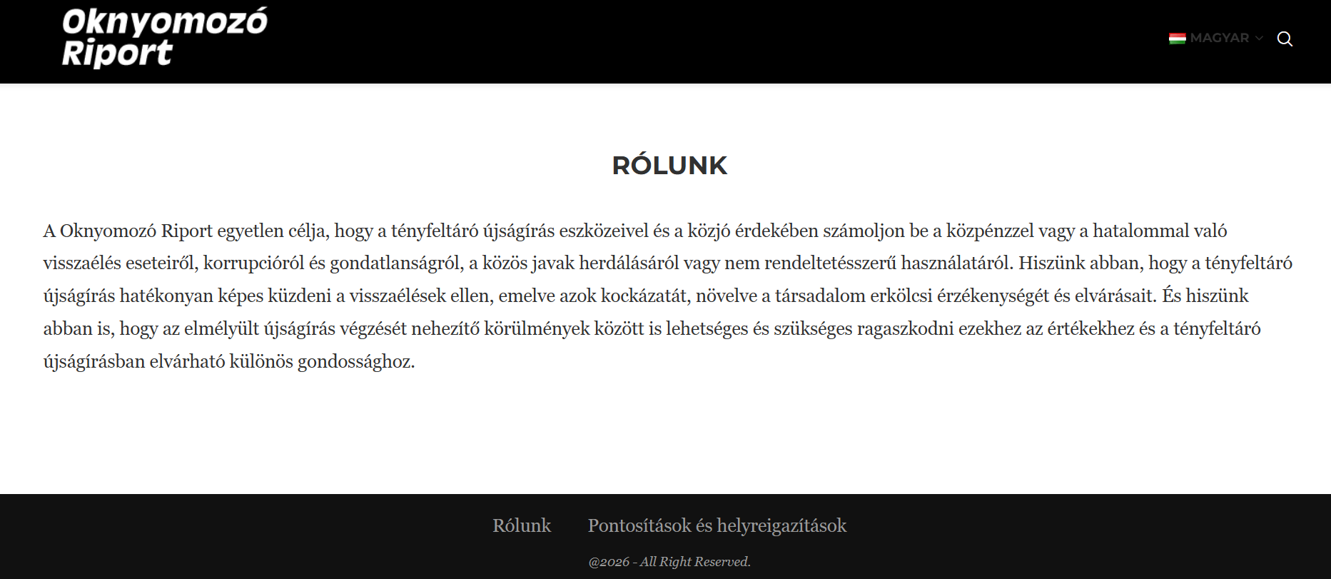 Az Oknyomozó Riport oldalán van egy Pontosítások és helyreigazítások menüpont is (ez az egy egyetlen menüpont a Rólunk mellett), ahol találtunk egy e-mail címet. Írtunk is egy üzenetet a megadott címre, arról azonban gyorsan visszapattantunk: