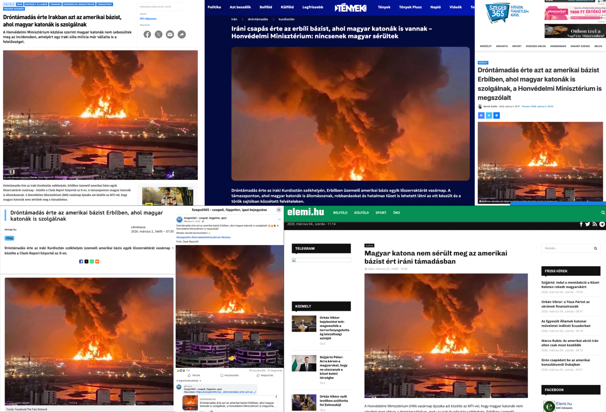A köztévé hírportálja, a Kossuth Rádió Facebook-oldala, a Népszava és a TV2 is mesterségesen felturbózott vagy hamis kontextusba helyezett képeket tett közzé az iráni válaszcsapásokról.