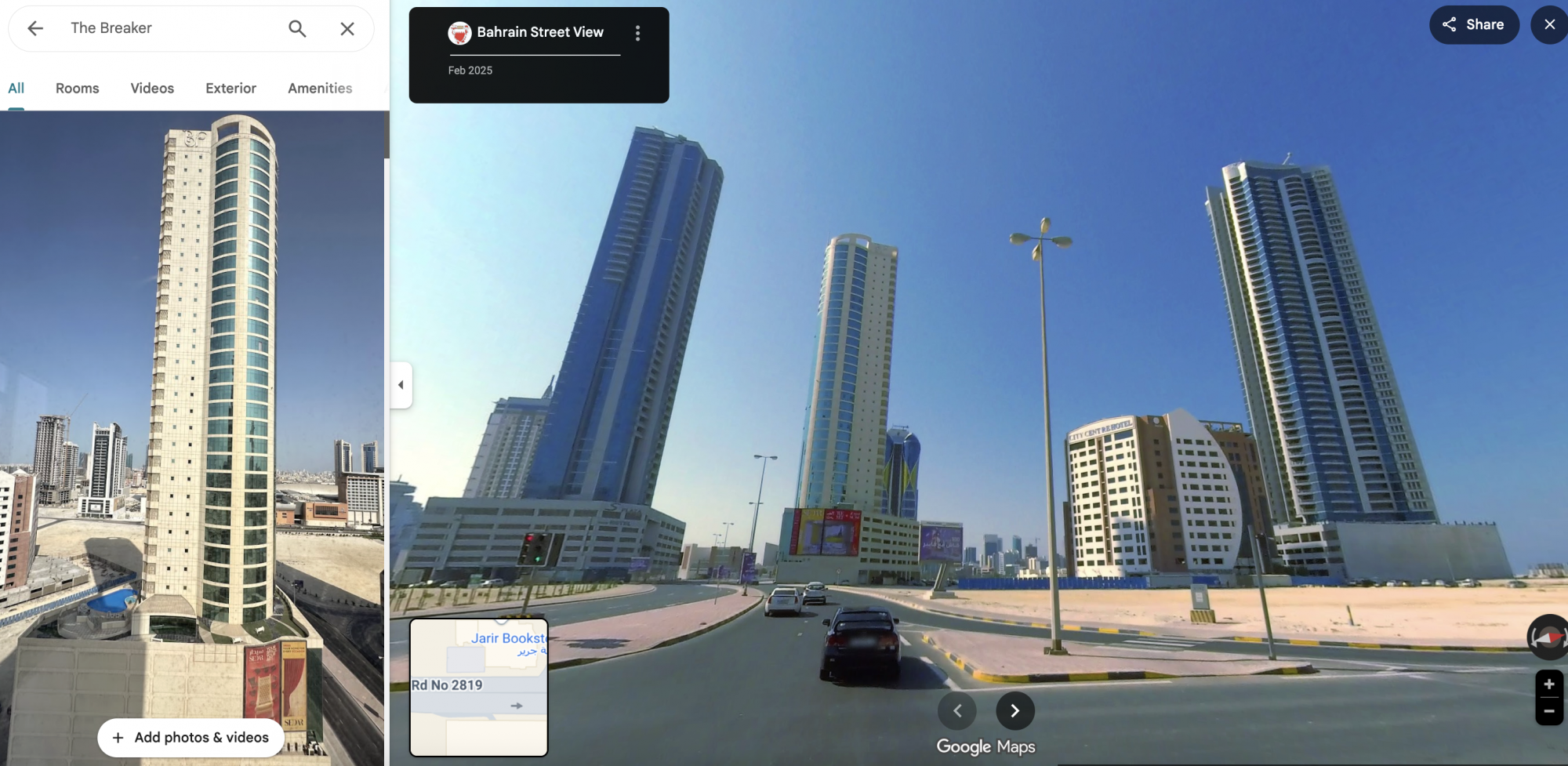 A Google Maps utcaképe alapján a felvételen a bahreini The Breaker nevű lakóépület látható.