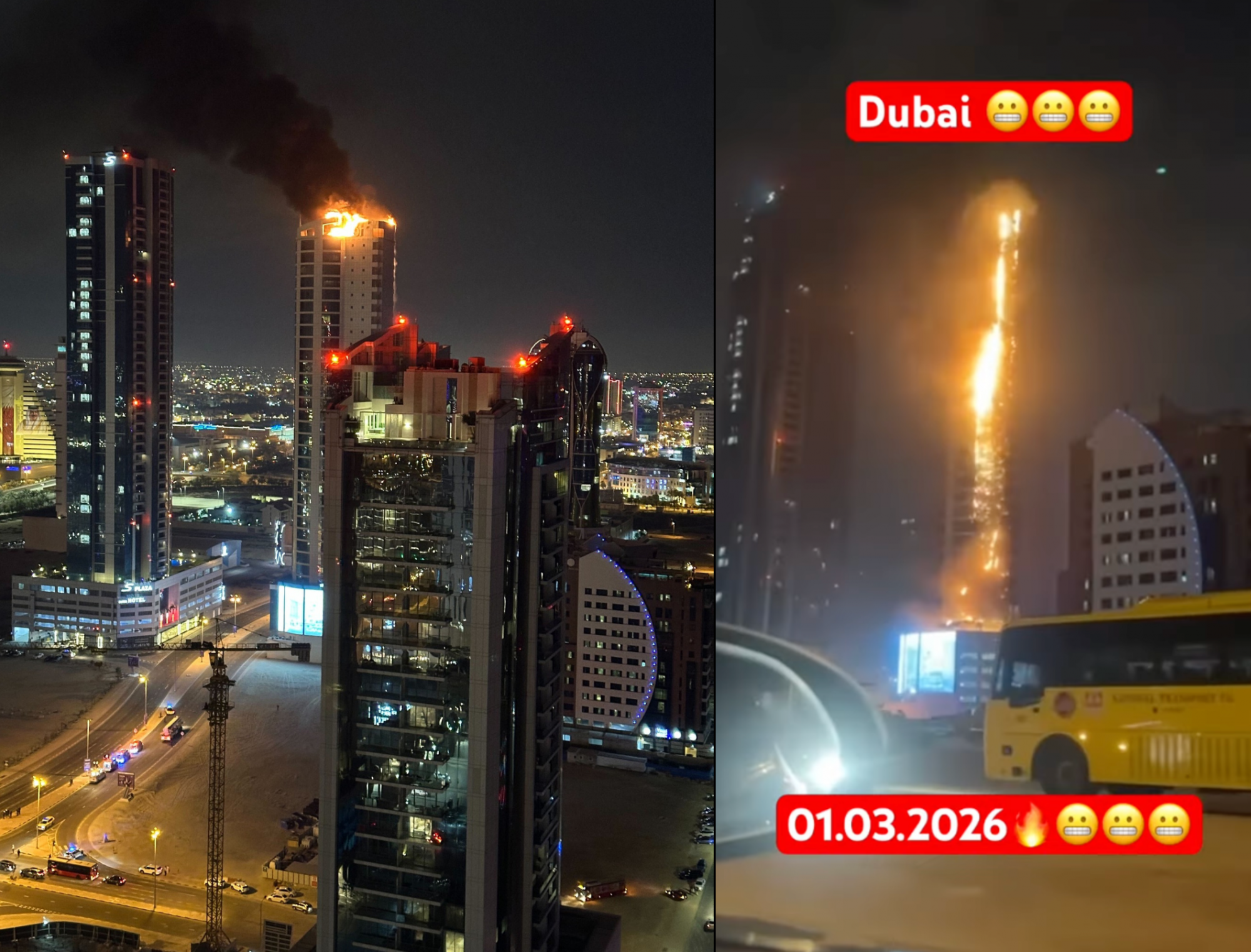A Blikk által közzétett felvételen ezzel szemben egy máshogy kinéző magasházat látunk, amit egy autóútról kameráznak, miközben az épület nagy része lángokban áll. Az épület kinézete és a jobb oldalán látható, jellegzetes alakzatú épület miatt nagy biztonsággal be lehet azonosítani, hogy a felvétel nem Dubajban, hanem Bahreinben készült.