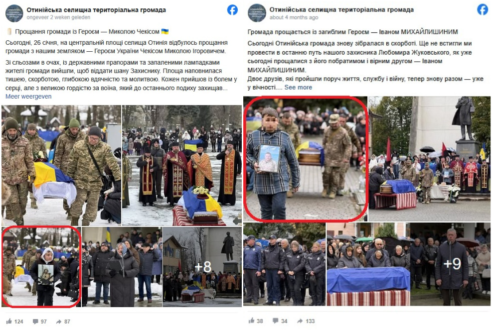 A nyolc fotón külön‑külön elvégzett fordított képkeresés segítségével sikerült kideríteni, hogy mindegyik kép más-más alkalommal készült, amikor az ukrán Ivano-Frankivszk megyében található Otyniia kistelepülés az elesett katonáira emlékeztek. A hősi búcsúztatásokat a helyi önkormányzat szervezte.