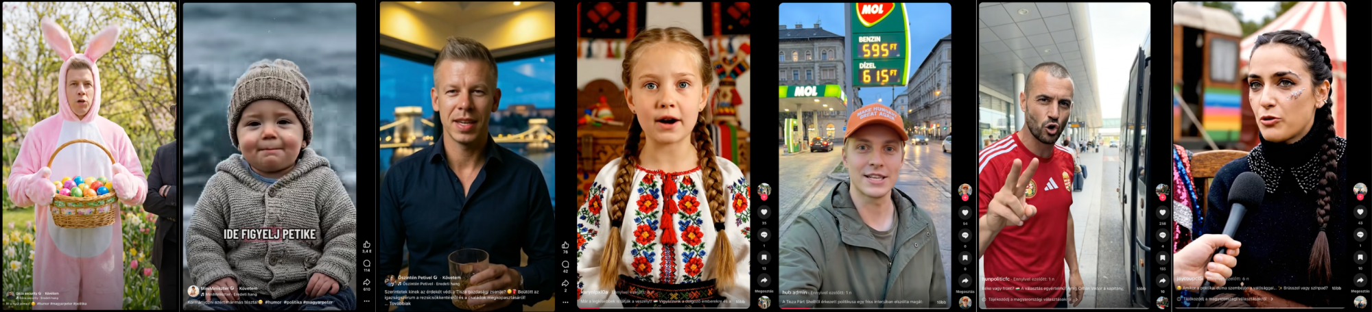 A Lakmusz gyűjtése szerint minimum 63 TikTok- és 17 Facebook-oldal jött létre azért, hogy üzemeltetőik AI-generált videók használatával a kormány üzeneteit terjesszék rajtuk. Számos jel utal arra, hogy az oldalak egy hálózathoz tartoznak: például a videók hasonló hossza, a posztolás hasonló intenzitása, és az, hogy a videók egy részének leírásában hasonló szöveg figyelmeztet az AI-generált tartalomra.