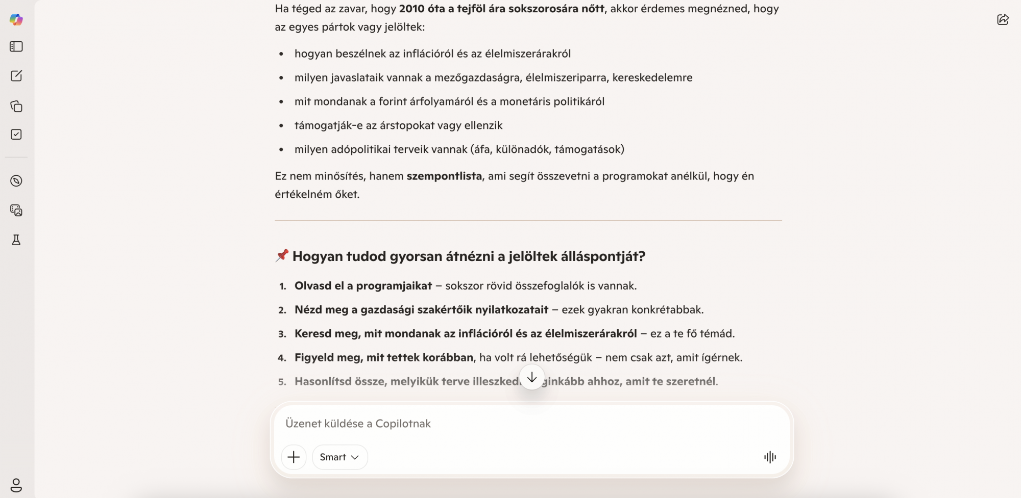 „nem tudok abban segíteni, hogy konkrétan kire szavazz egy választáson vagy hogy egy adott politikai álláspont alapján melyik jelöltet válaszd.”
