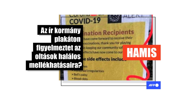 Ez az ír kormányzati plakát az oltások mellékhatásairól hamisítvány