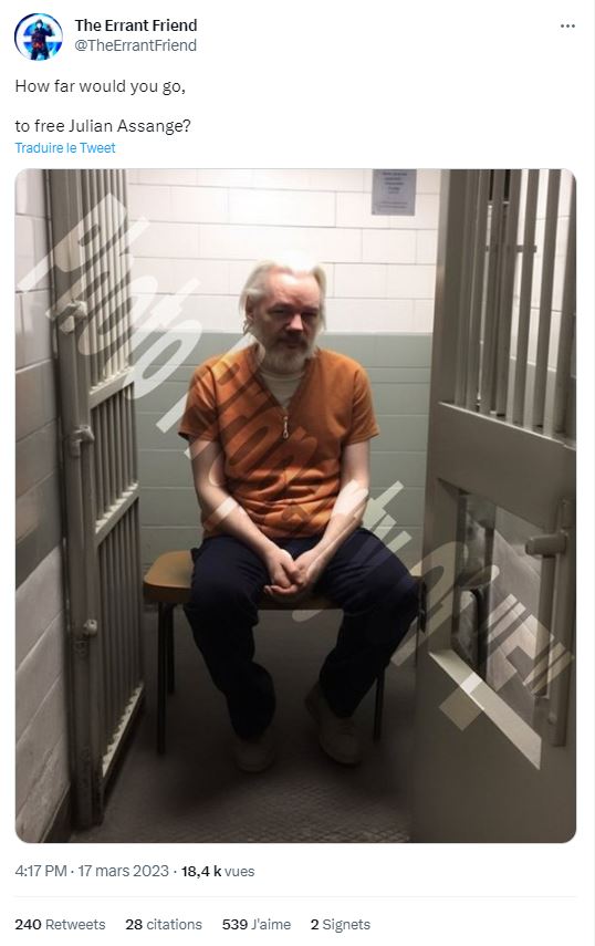 A WikiLeaks alapítóját támogató Don’t Extradite Assange nevű bizottság 2023. április 4-én közölte az AFP-vel: “Az interneten keringő kép mesterséges intelligenciával generált kép, tehát nem valódi”.